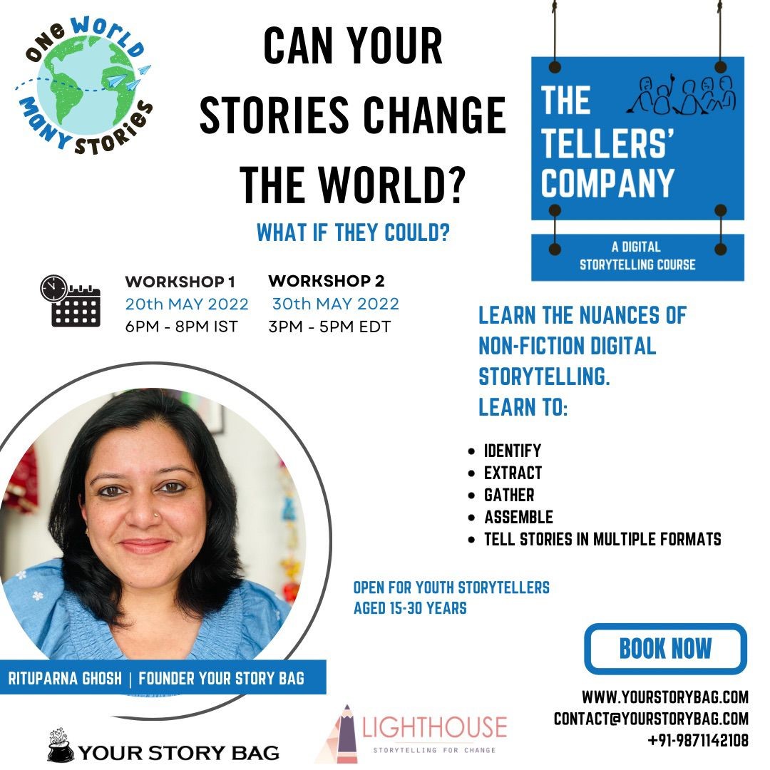The Tellers’ Company is a Digital Storytelling Module designed & developed by Rituparna Ghosh, a former TV journalist,TedX Speaker, Storyteller,Trainer, Consultant & Coach.